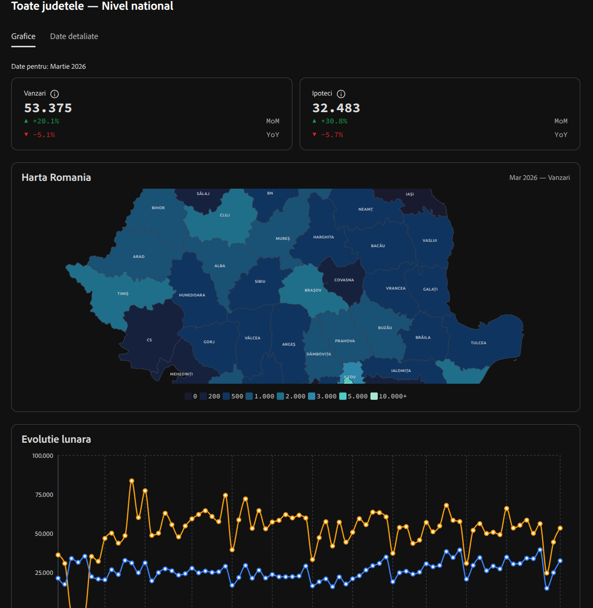 Romanian Real Estate Transaction Statistics turns the ANCPI spreadsheets into something you can actually read.
